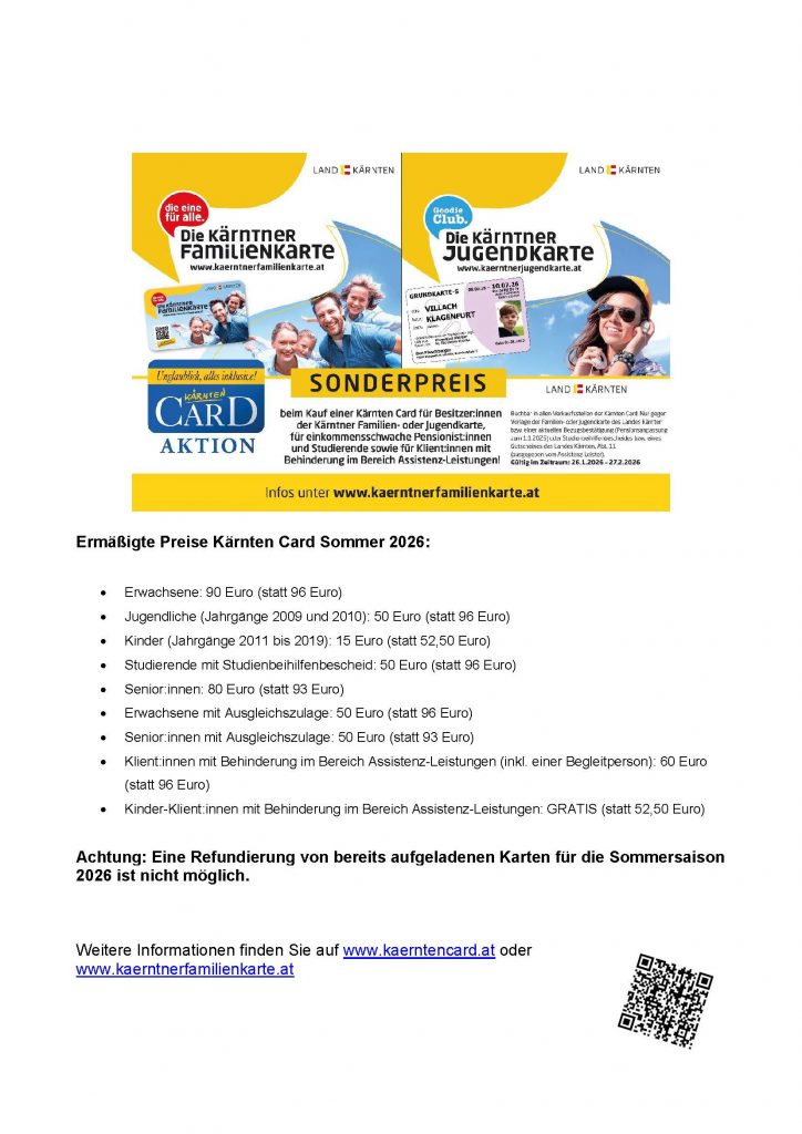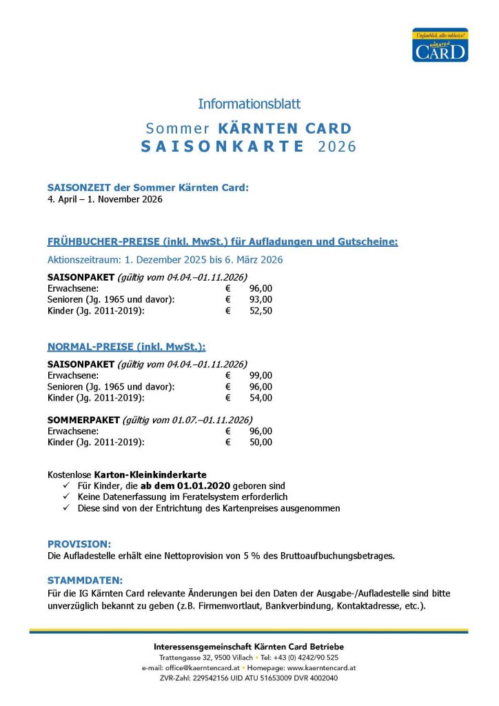 Kärnten Card – NEU in der Tourismusinformation : auch AUFLADESTATION für Saisonpakete sowie Familienkarten Aktion