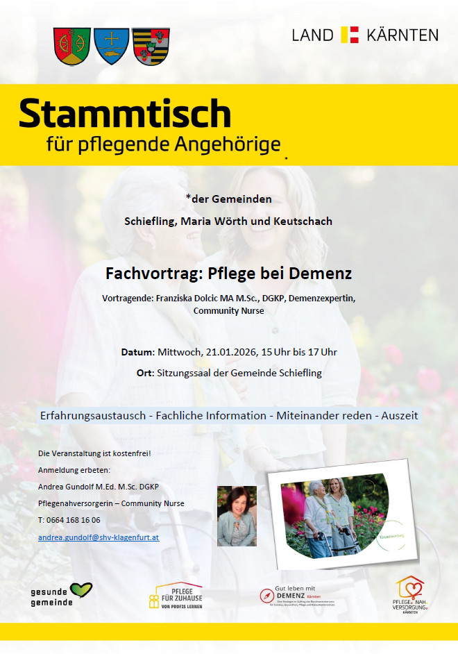 Stammtisch für pflegende Angehörige – Sitzungssaal Gemeinde Schiefling